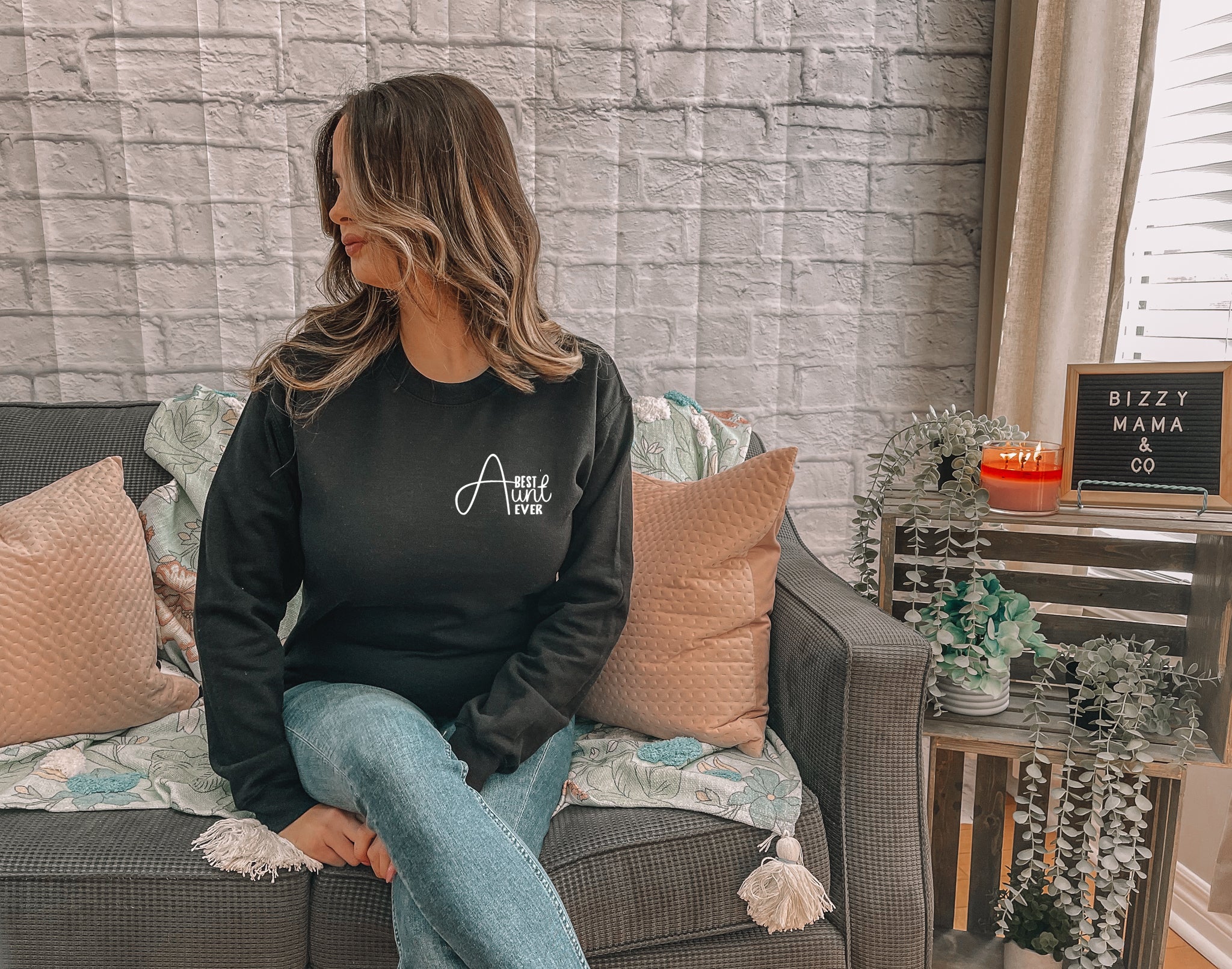 All Bizzy Mama & Co. crews are UNISEX sizing. They run larger than your typical women’s sweaters and are true to size for men.